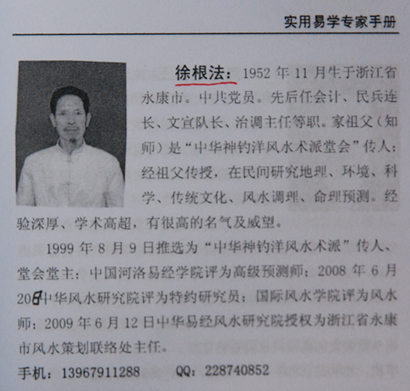 永康風(fēng)水師電話、風(fēng)水先生聯(lián)系方式:18305896288,永康風(fēng)水大師有哪些呢?在永康看風(fēng)水先生最準(zhǔn)的是徐根法大師。永康風(fēng)水師徐根法是中華神釣洋風(fēng)水術(shù)派傳人,專業(yè)陰陽宅看風(fēng)水、公司取名稱、小孩取名字、擇日子、神佛、開光、選車牌、手機(jī)號碼、算命、點(diǎn)痣以及家居裝潢風(fēng)水知識。
